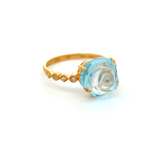 14K Yellow Gold Ring with 5.53 ct Natural Blue Topaz & Diamonds – IGI Certified
