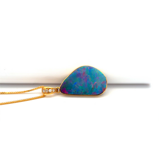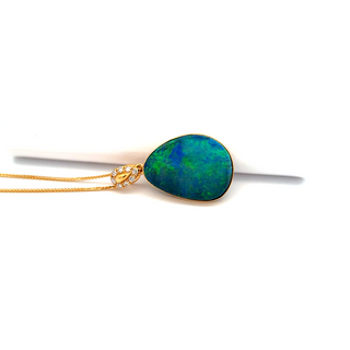 14K Yellow Gold Pendant with 3.68 ct Natural Opal & Diamonds – IGI Certified
