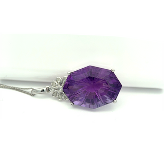 14K White Gold Pendant with 7.61 ct Natural Amethyst & Diamonds – IGI Certified