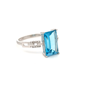 14K White Gold Ring with 2.58 ct Natural Blue Topaz & Diamonds – IGI Certified