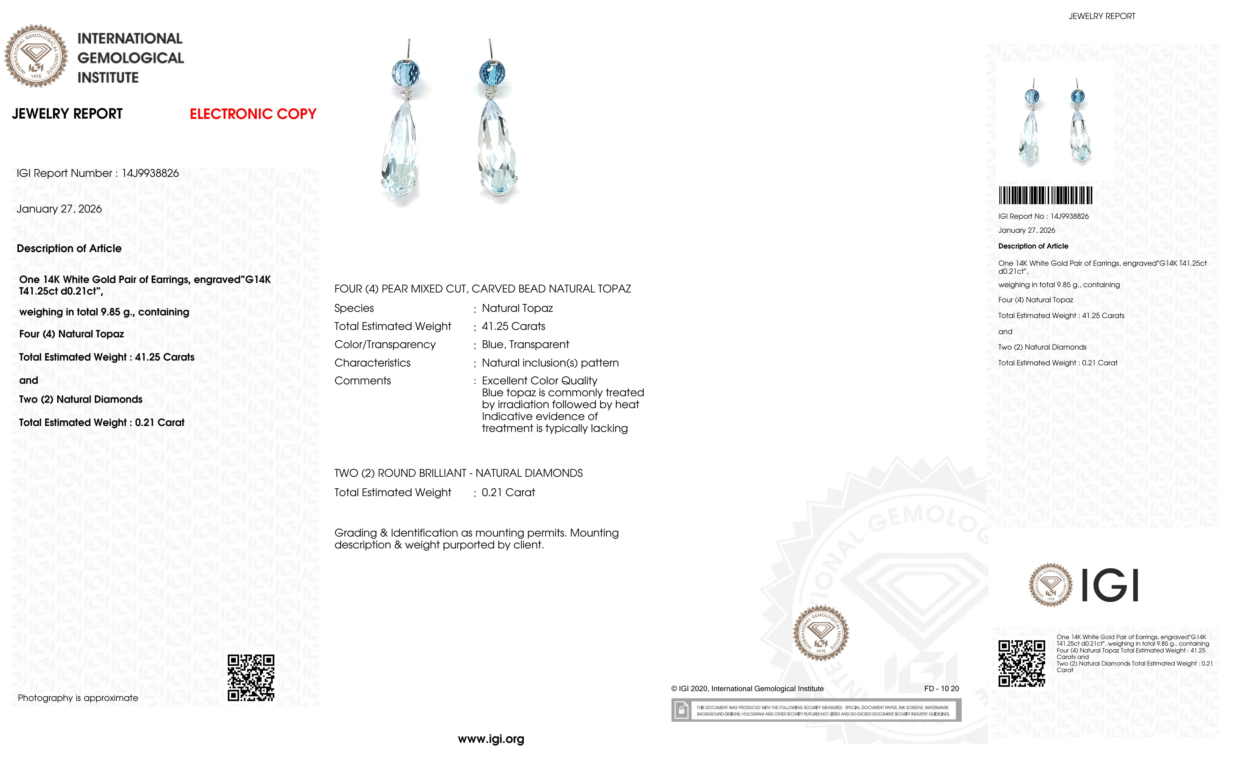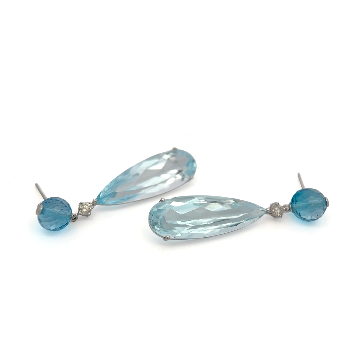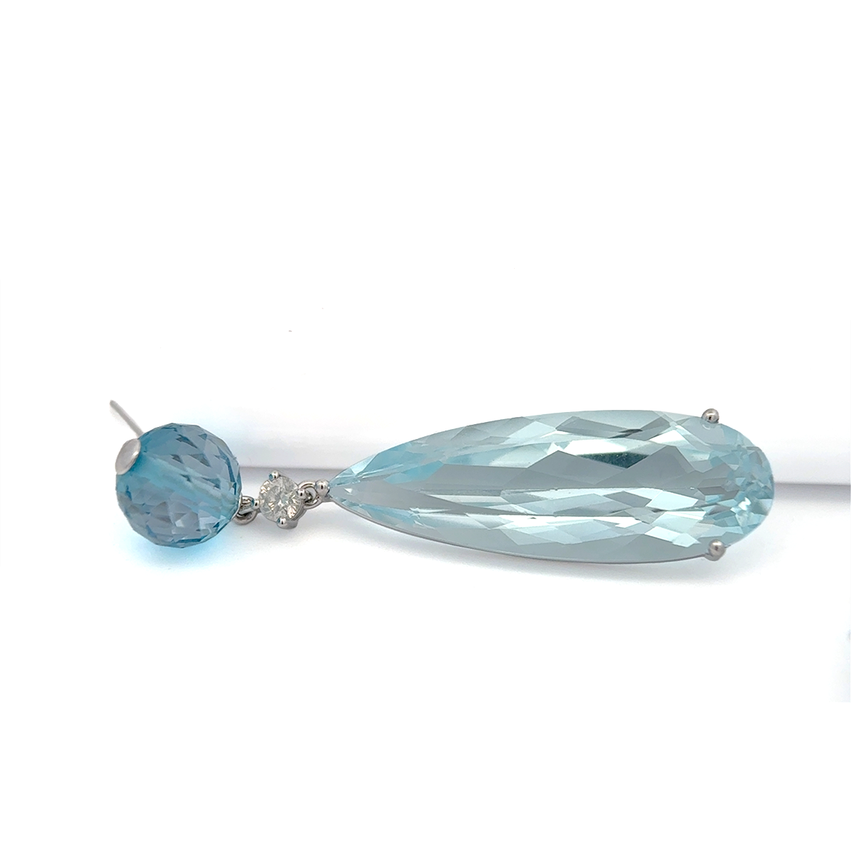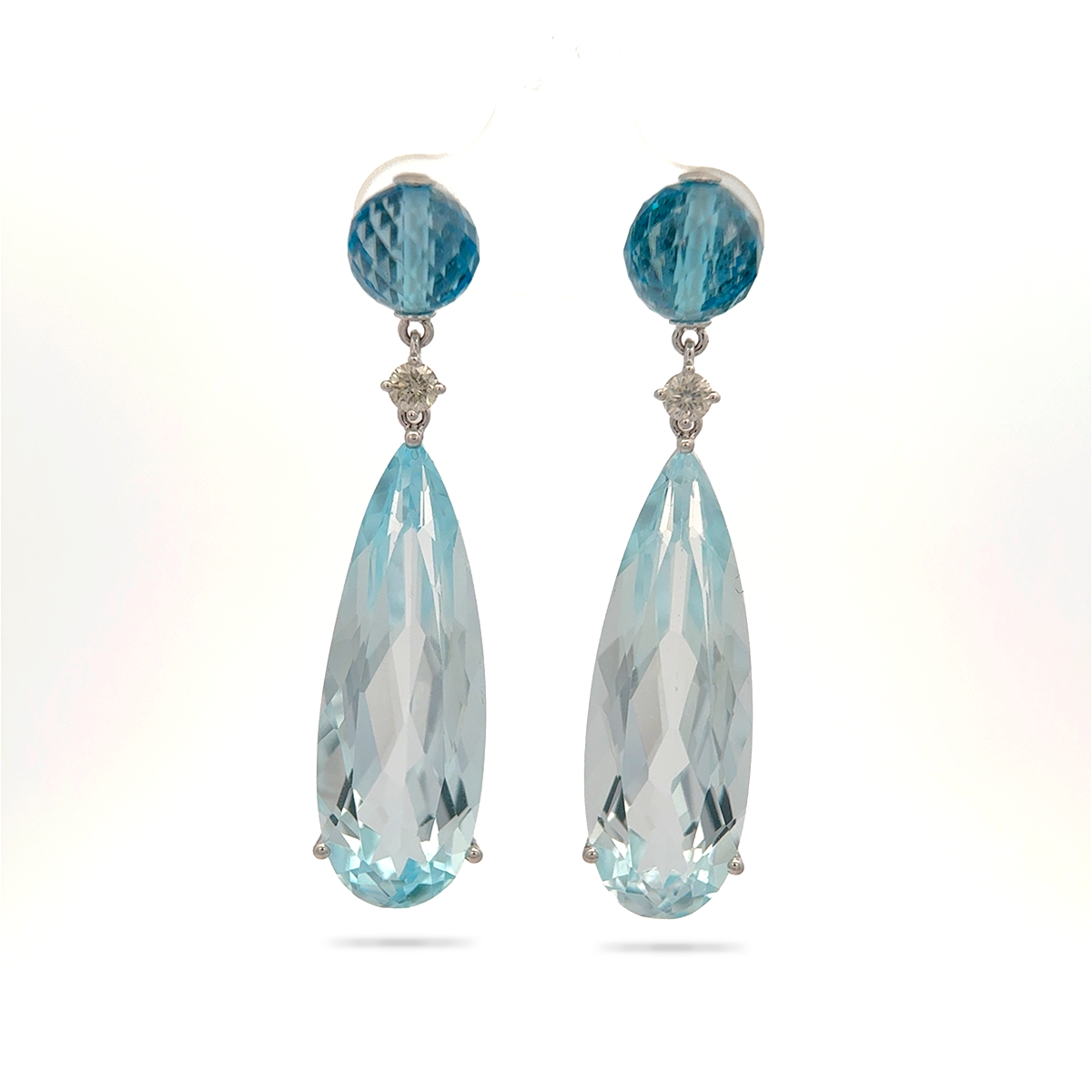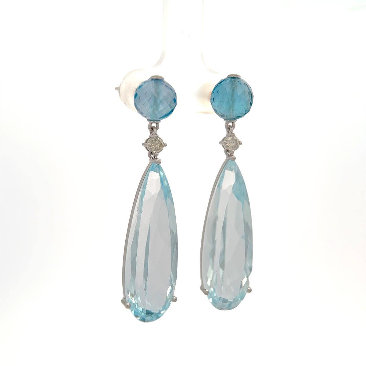 14K White Gold Earrings with 41.25 ct Natural Blue Topaz & Diamonds – IGI Certified