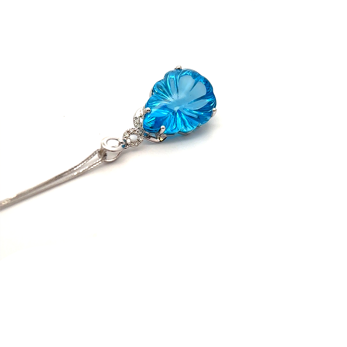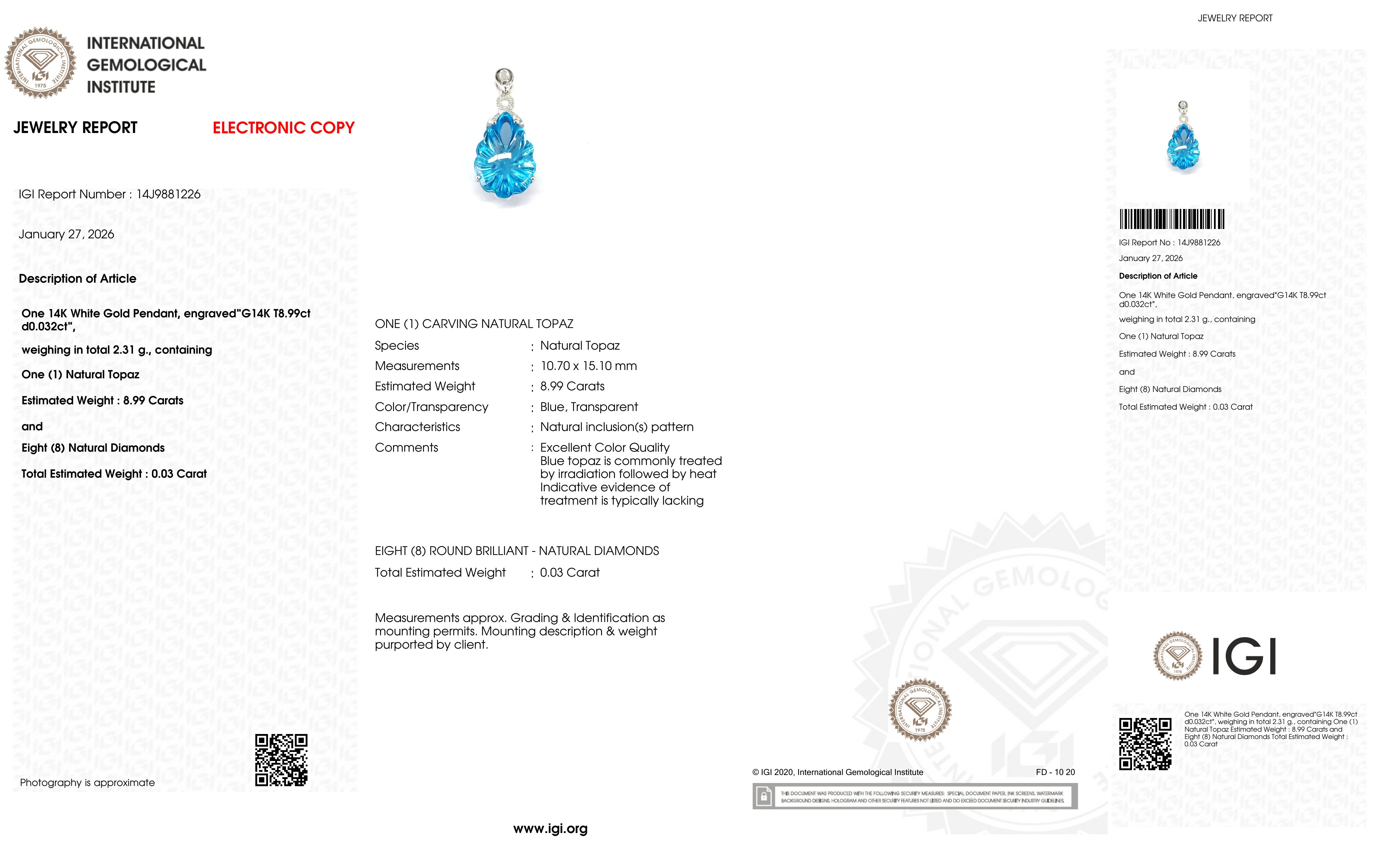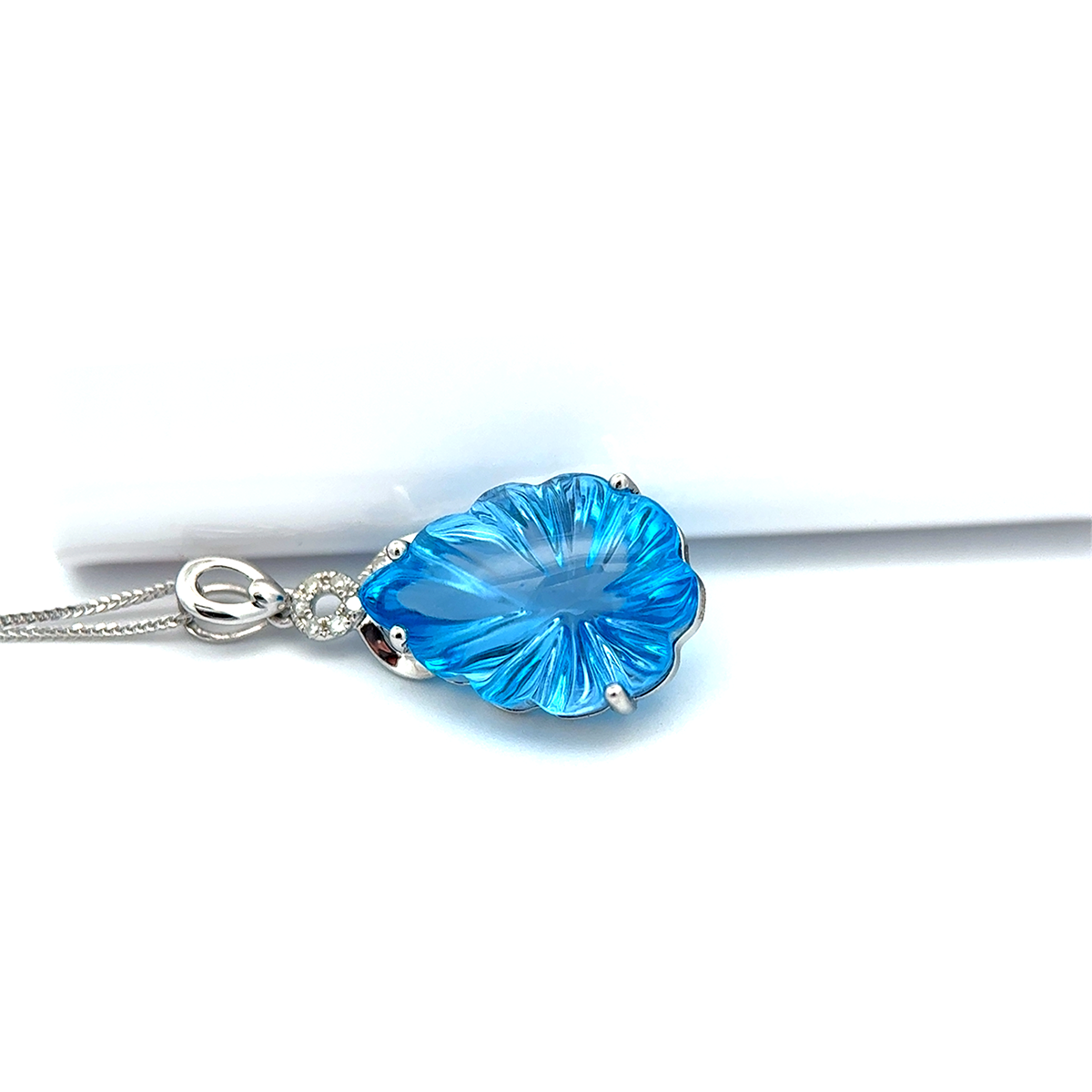 14K White Gold Pendant with 8.99 ct Natural Blue Topaz & Diamonds – IGI Certified