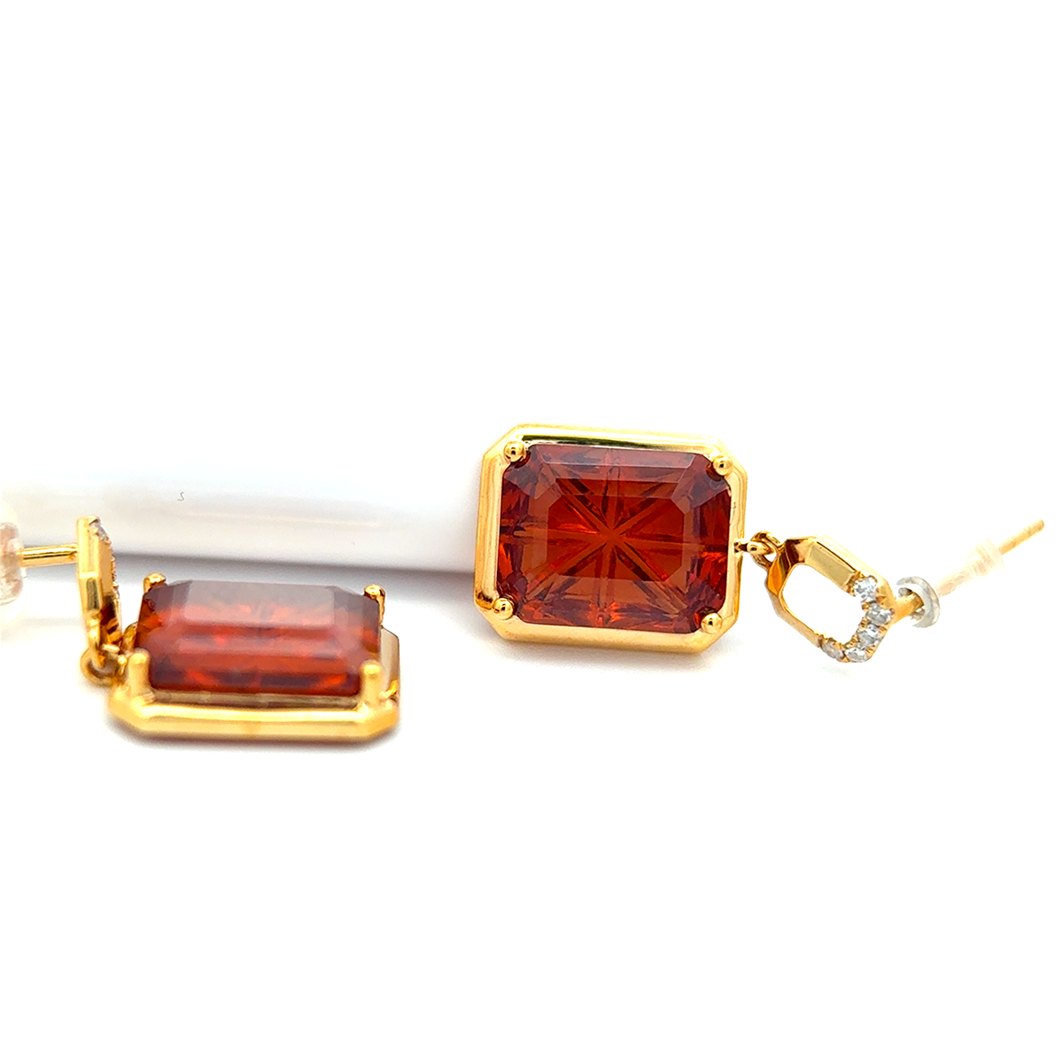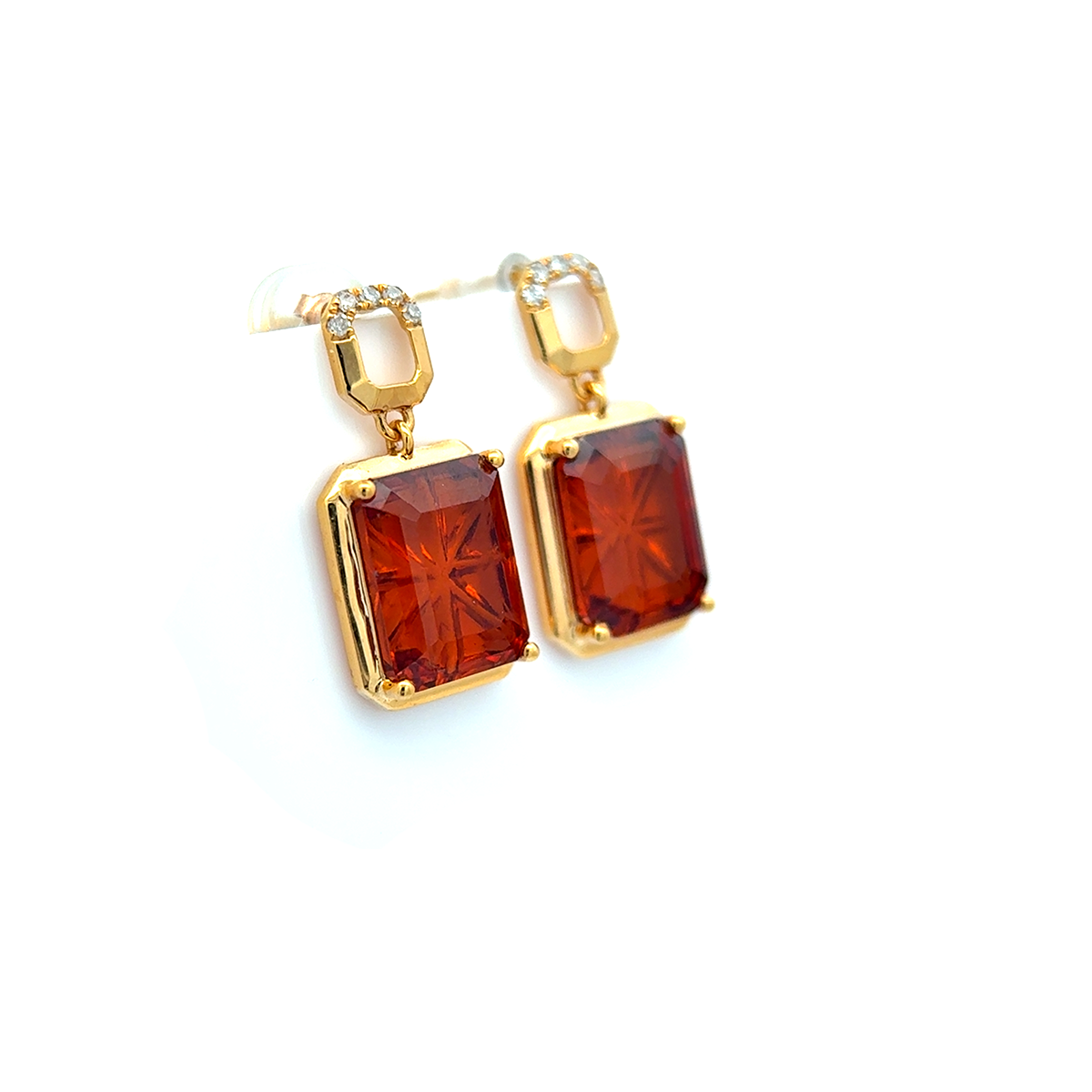 14K Yellow Gold Earrings with 5.49 ct Natural Garnets & Diamonds – IGI Certified