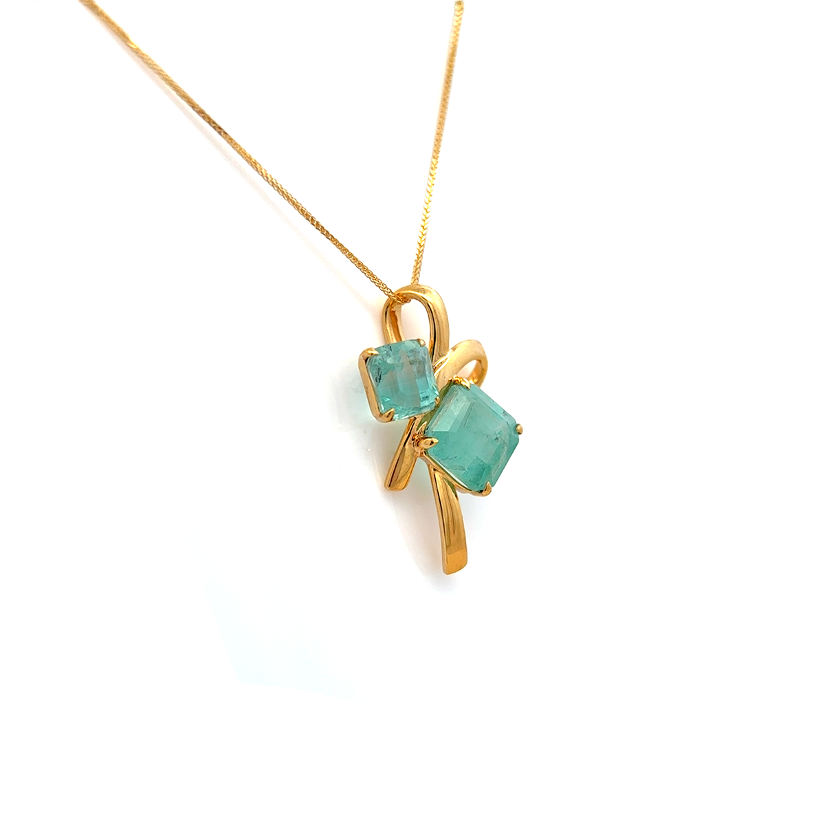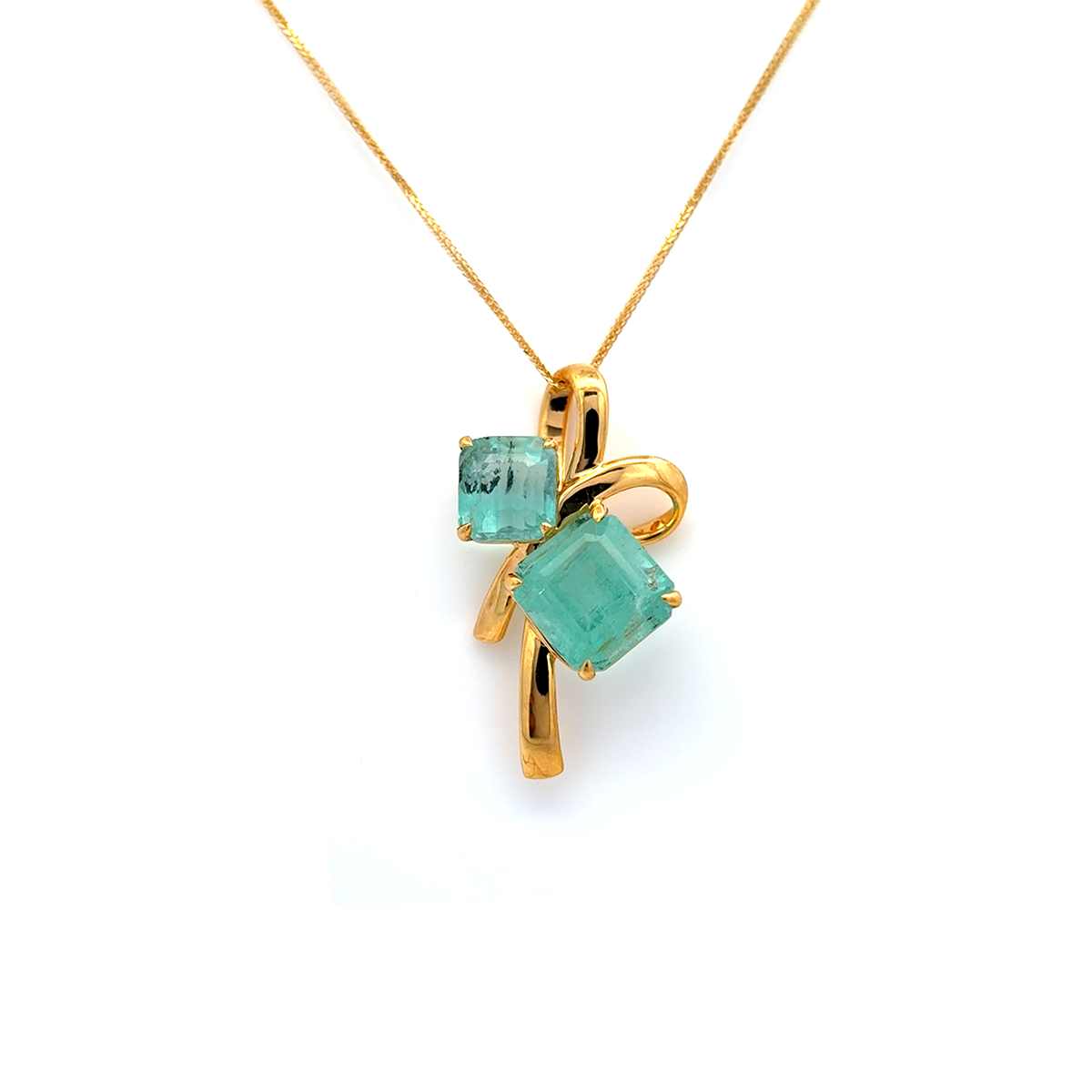 14K Yellow Gold Pendant with 3.25 ct Natural Emeralds – IGI Certified