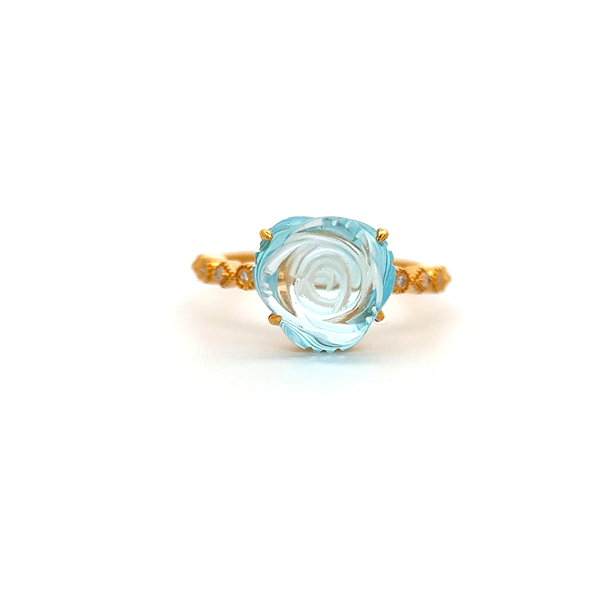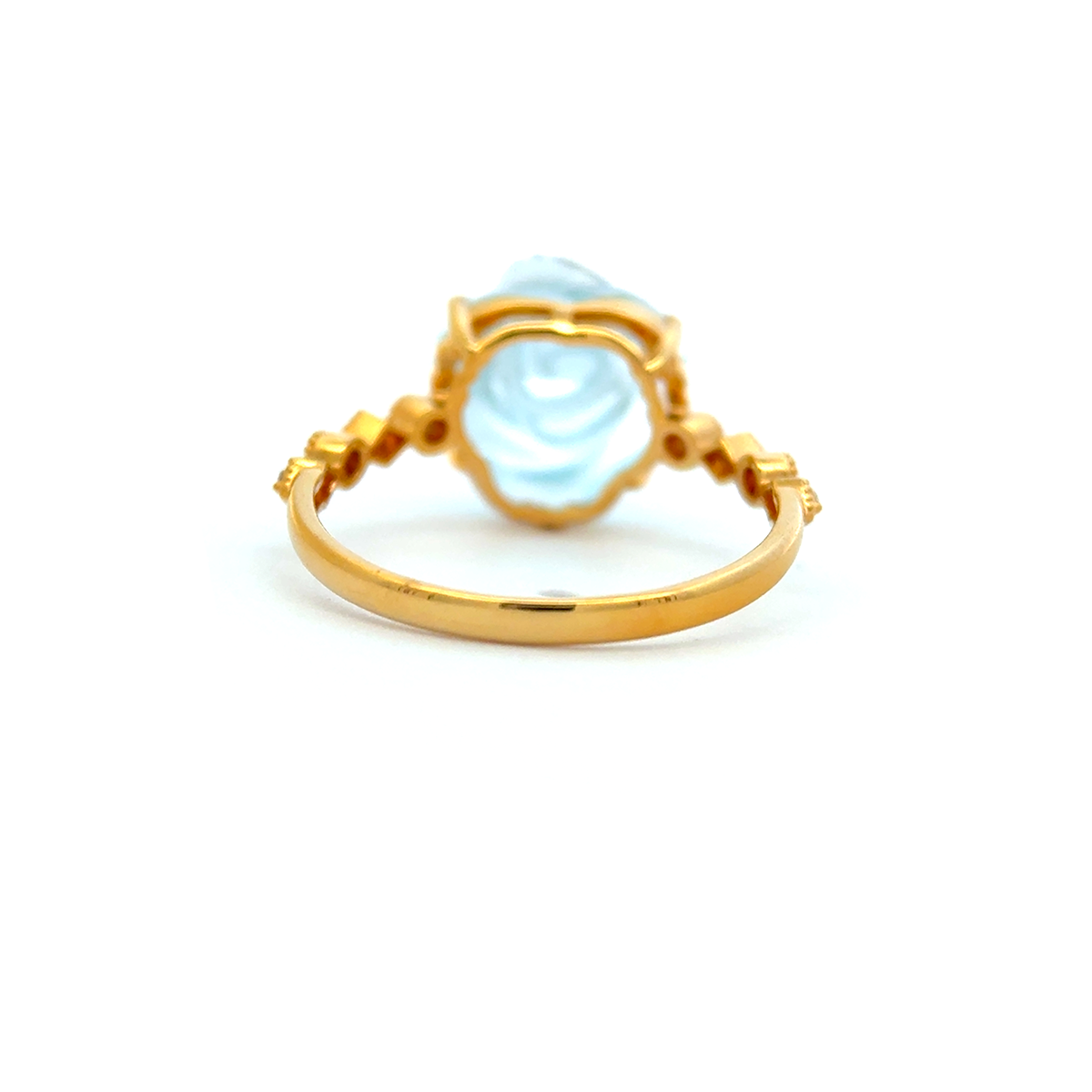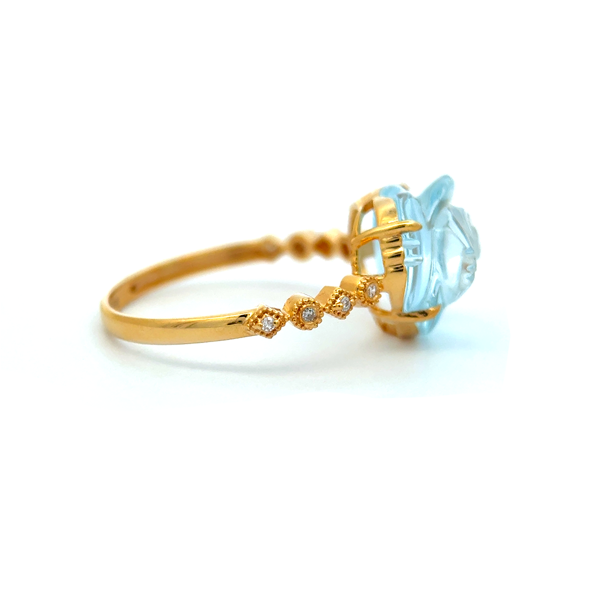 14K Yellow Gold Ring with 5.53 ct Natural Blue Topaz & Diamonds – IGI Certified