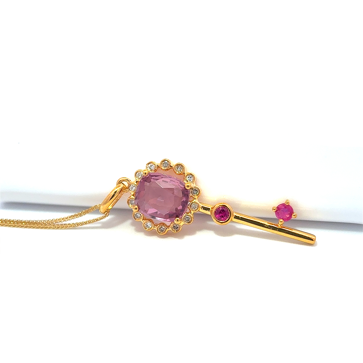 Golden Key Spinel Ruby Halo Pendant